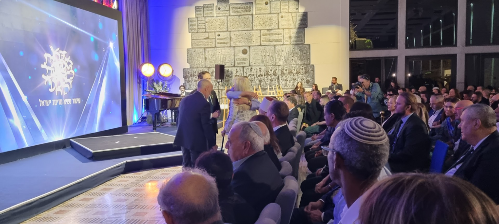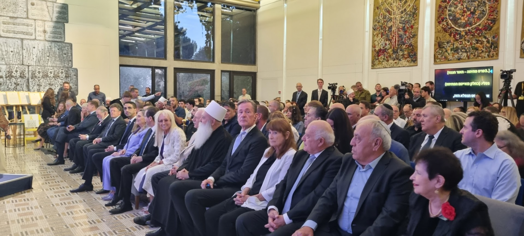 The honorees were seated in the front row with distinguished guests on the other side of President and Michal Herzog. US Ambassador Mike Huckabee was one of several Ambassadors.