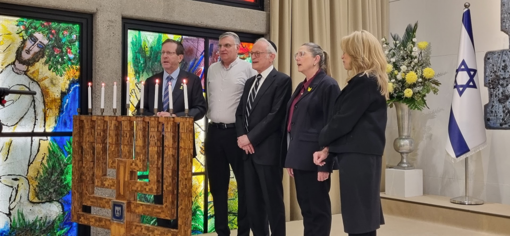 Then, President Isaac and Michal Herzog lit the chanukiya at Beit Hanasi with Marc and Chantal Belzberg at a special OneFamily event, connecting the first candle victims in Sydney with Israeli victims of terror.