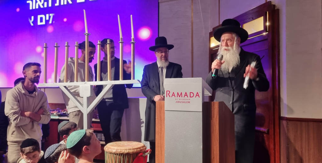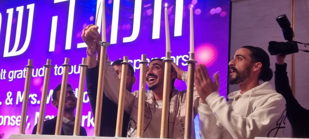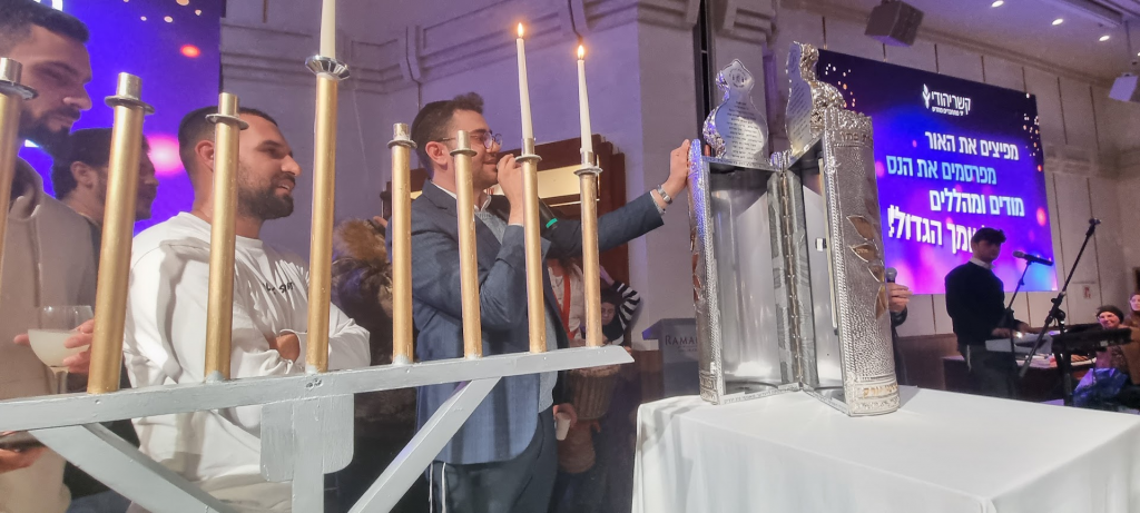 Kesher Yehudi honored Nova survivors to light the candles as the rabbis and hundreds of guests watched.