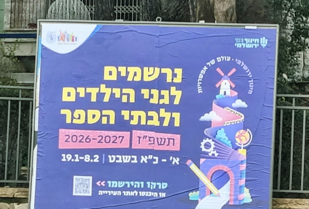 On the Jerusalem streets, signs are up for class registration for next year.