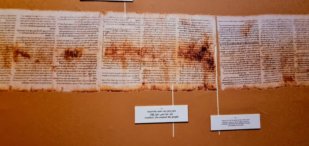 The exhibit shares a video of the journey of the Isaiah Scroll from the desert to Jerusalem and its current home.