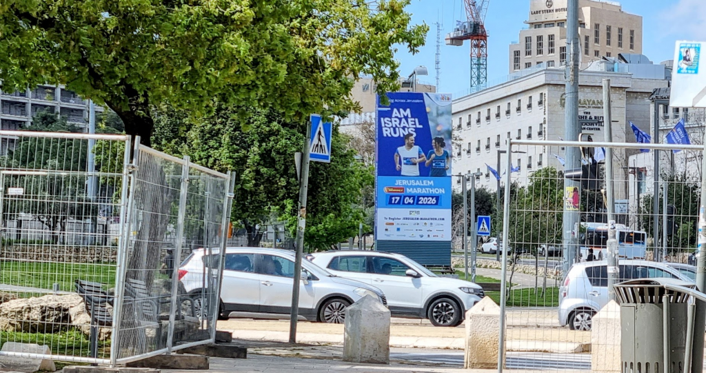 This year, marathon posters and flags are also on the Jerusalem streets.