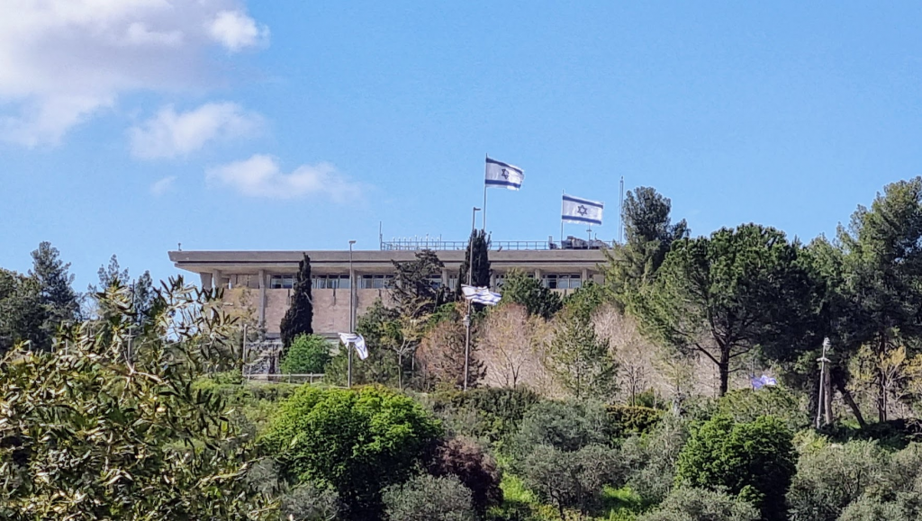 Around the Knesset, Israeli flags usually go up after Pesach, the Passover holiday.