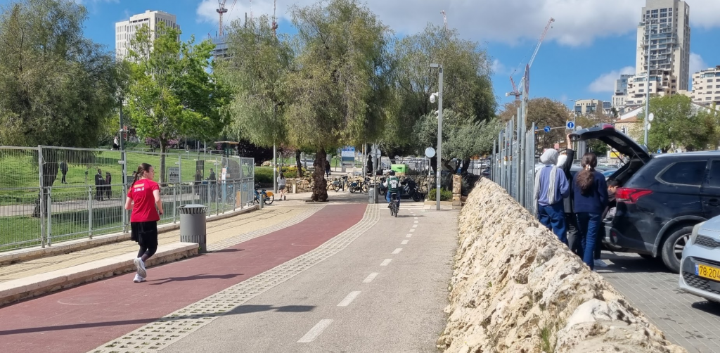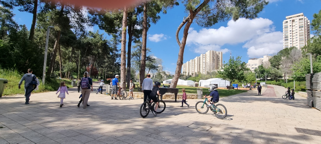 Young people were riding bikes in Gan Sacher, Sacher Park, in the afternoon sun.